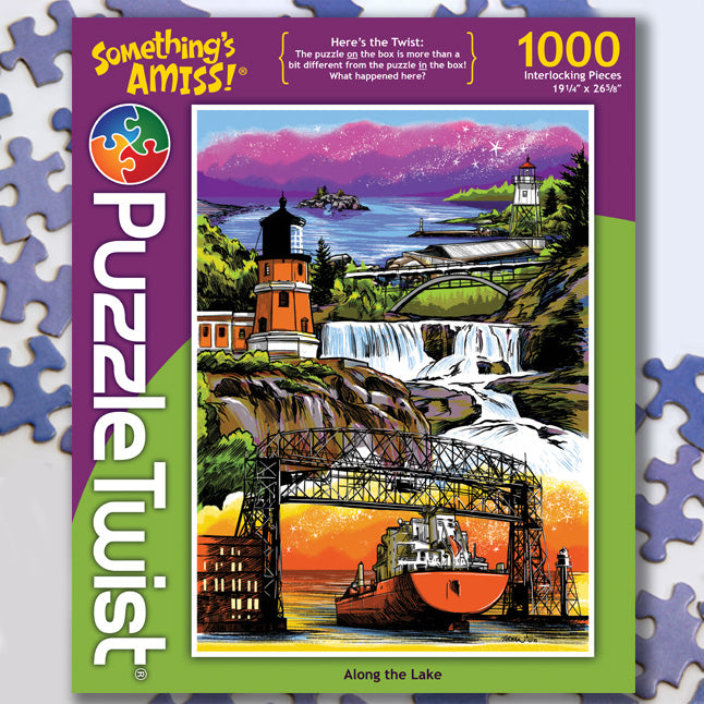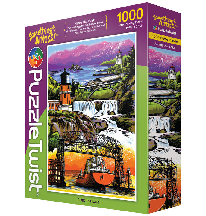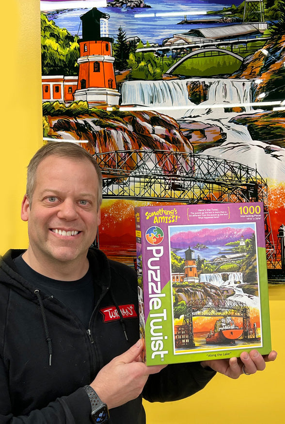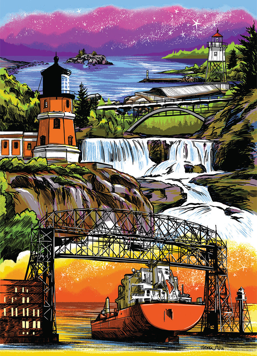 Adam Turman is known throughout Minnesota for his illustrations capturing iconic state landmarks and characters treasured in the North. Within Along the Lake, Adam gives us a tour of the North Shore from Duluth all the way to Grand Portage. A puzzle trip you're sure to enjoy... and with a few twists you will want to keep an eye out for the unexpected.