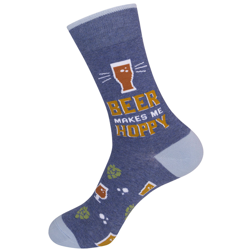 Raise a glass to good times with our "Beer Makes Me Hoppy" funny socks!