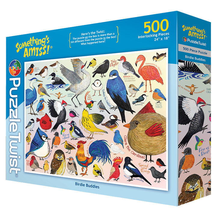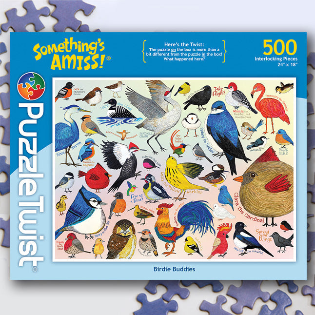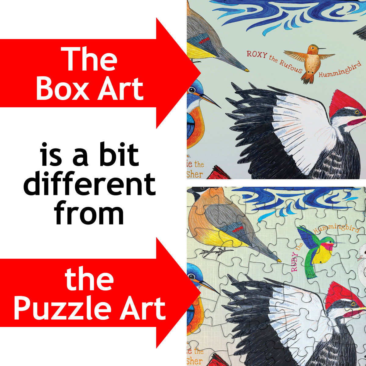 Heather Boschke, Minnesota artist and author, illustrates her birds with pen and marker. Her favorite part is giving them names! Inspired by her grandfather's nickname, "Heather Feather," these delightful birds are now featured in her children's book series, Little Birdie Buddies. Keep a close eye out, as her feathered friends might surprise you as you piece this one together!