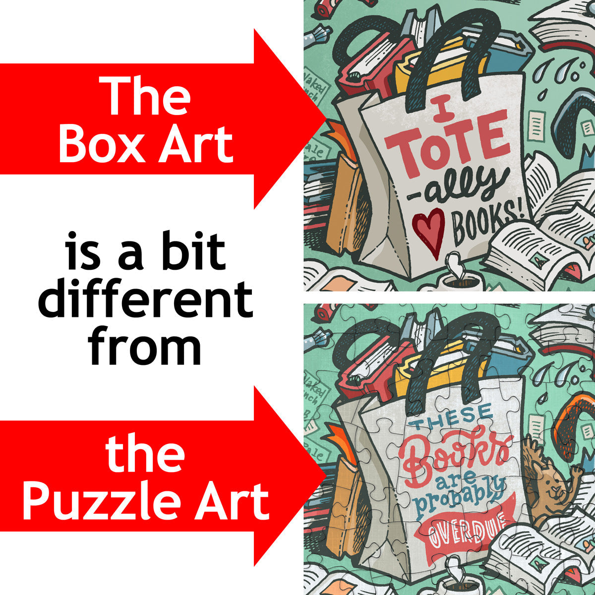 Kevin Cannon is a Minnesota artist who is known for his detailed and colorful cartoon maps and comics. A self described book lover who has also illustrated the Midwest Independent Bookstore Roadmap since 2015, Kevin was in his comfort zone while creating this puzzle. With a few added twists this jigsaw will keep you guessing about the ending until the very last piece.