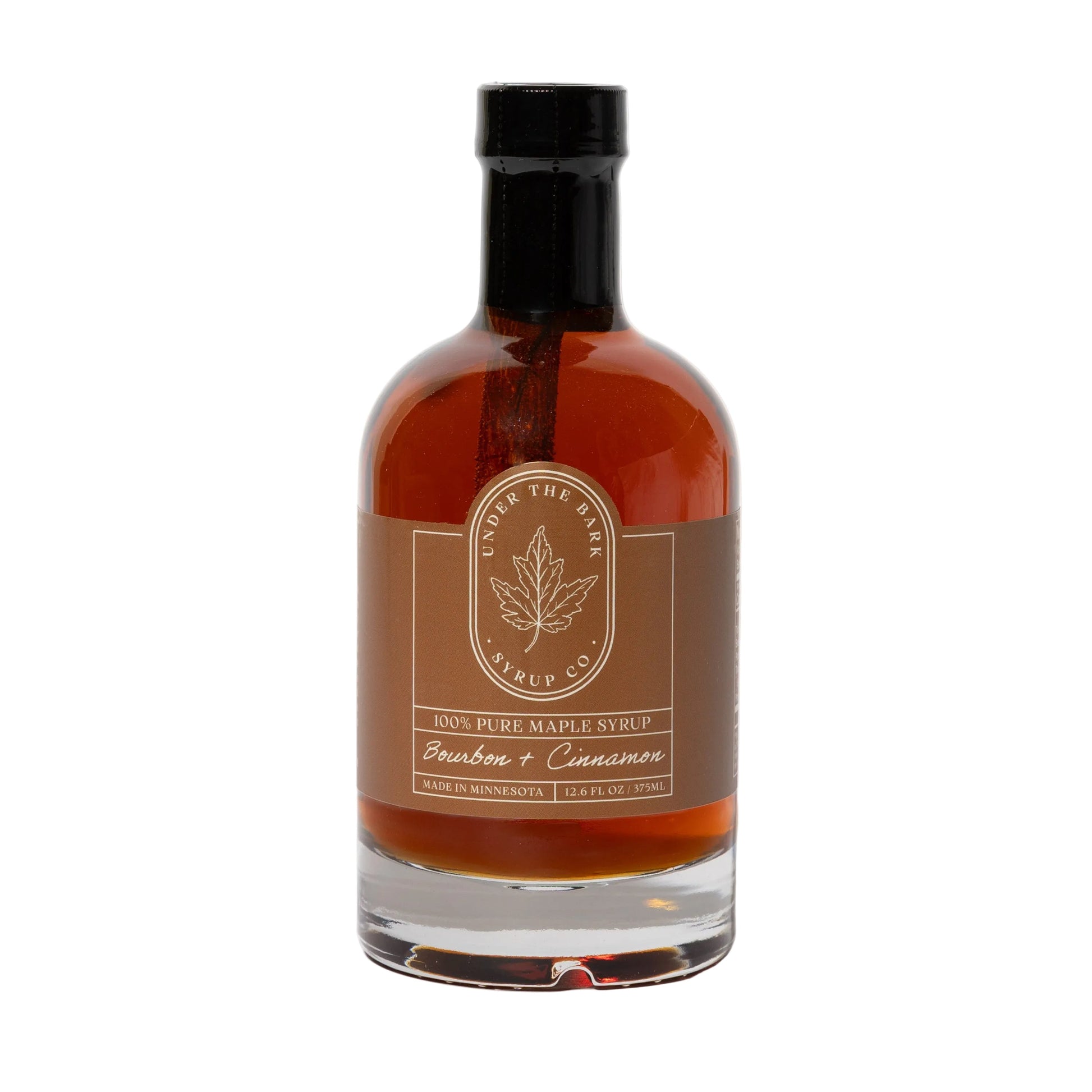 Pure maple syrup, blending our bourbon maple syrup with a cinnamon stick.