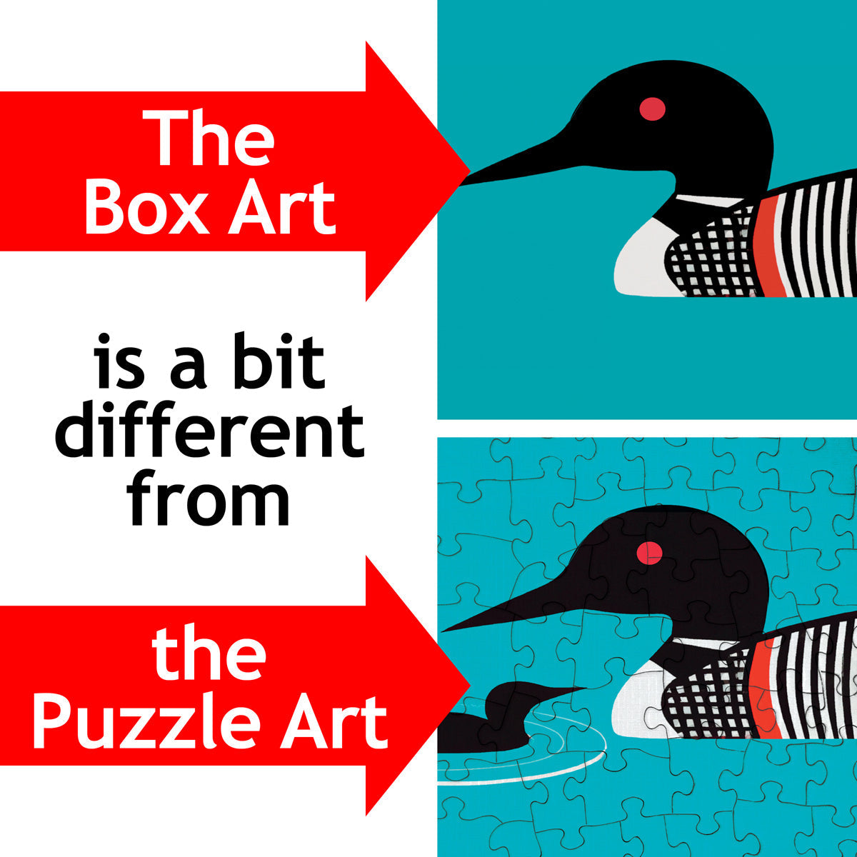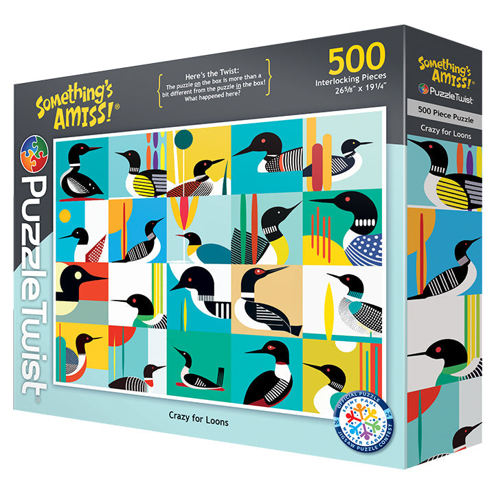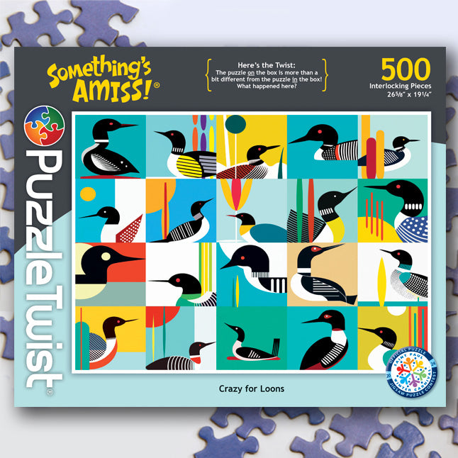 Sarah Browne is a photographer and mixed media artist from Minnesota known for her distinct illustration style. She has traveled extensively and settled in Los Angeles for over a decade, but recently returned to the North Star State. Crazy for Loons is a jigsaw sampling of her latest illustrations, a tribute to loons, the magnificent birds that call forested northern lakes home. Combined with a few twists... this is one puzzle that may drive you a little bit loony.