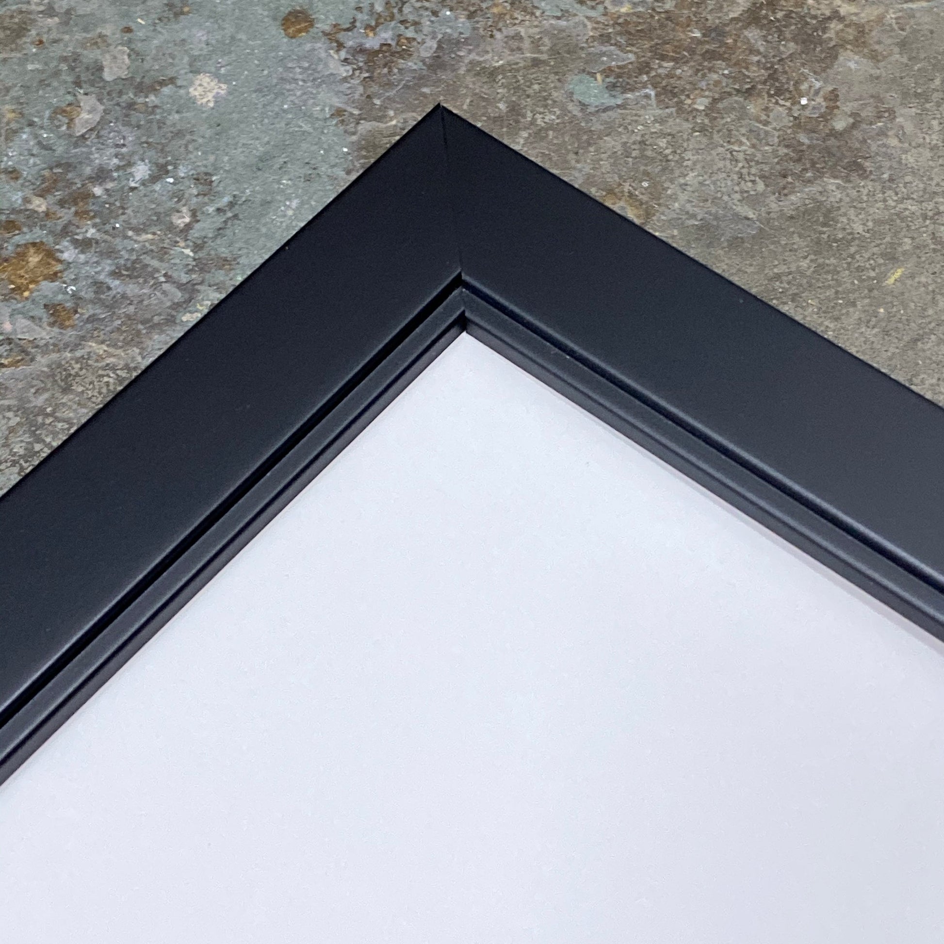 Metal prints include a black metal frame that is set in from the print’s edge with a 1-5/16" depth and finished with a sawtooth or wire hanger.