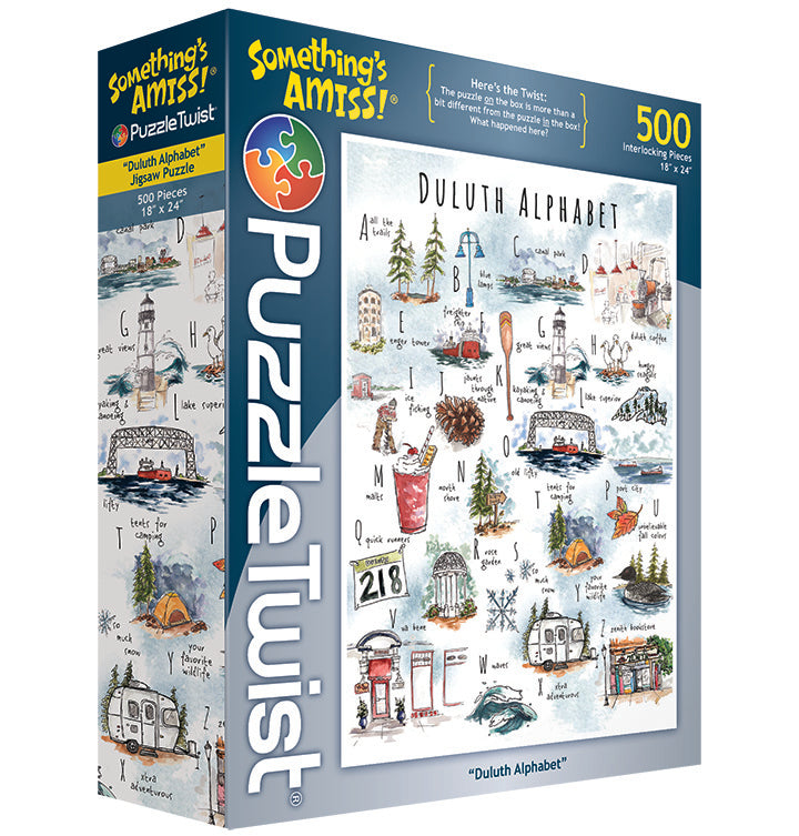 Sam Nielsen is a watercolor artist known for her loose, whimsical style. She gets much of her inspiration through the experience of urban sketching and the north shore scenery. Sam particularly enjoys capturing the personality of a sassy seagull, intriguing architecture, and of course... pine trees. Duluth Alphabet is a journey through town that celebrates popular destinations as well as locally known gems. With the addition of a few twists this is one puzzle that will have you humming your ABCs in a whole new way!