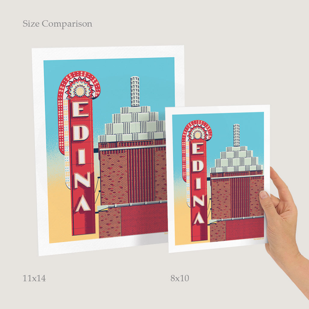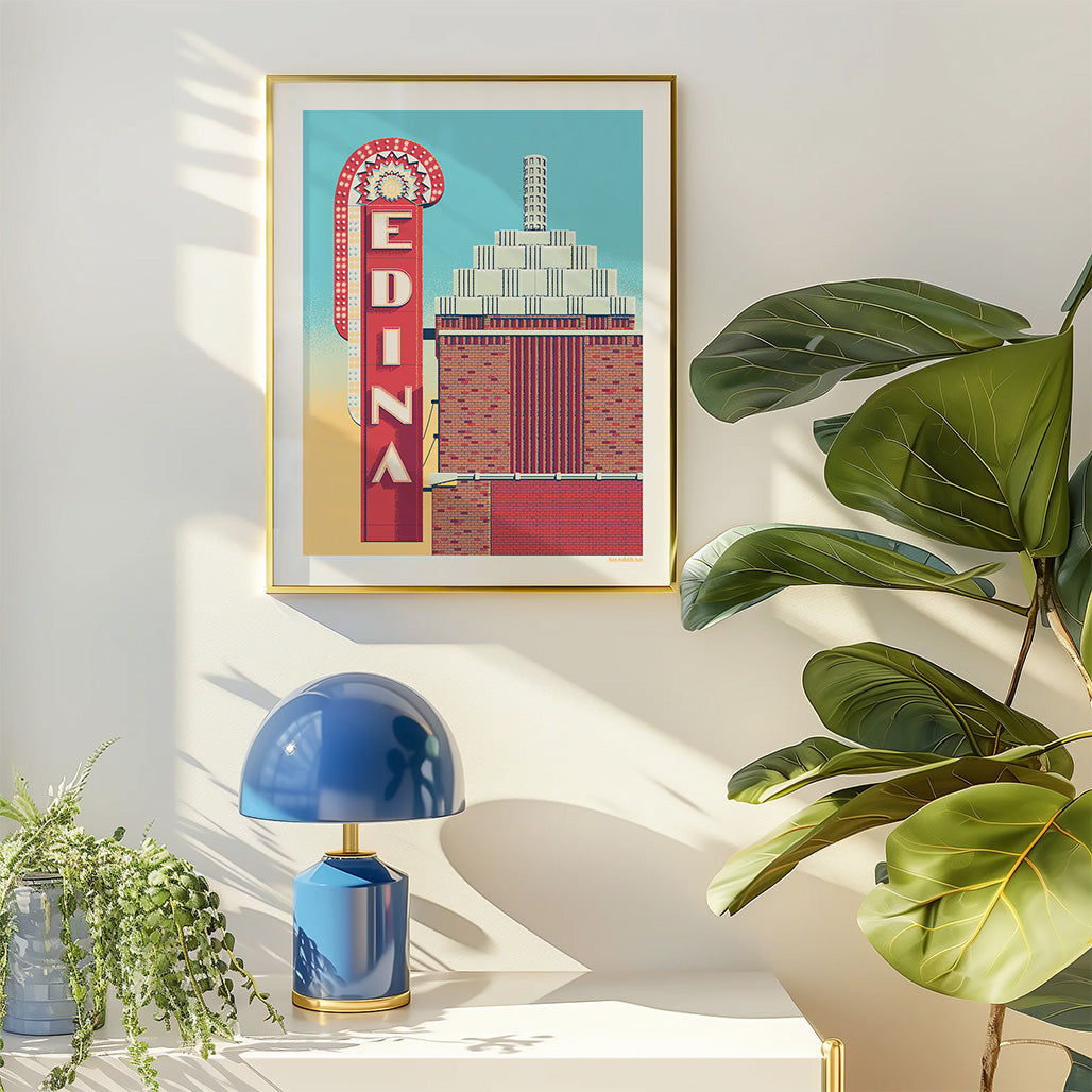 Capture the charm and nostalgia of Edina, Minnesota with this vibrant art print featuring the iconic movie theater sign. A local favorite and a symbol of classic small-town cinema, this colorful piece brings a touch of vintage magic to your wall.