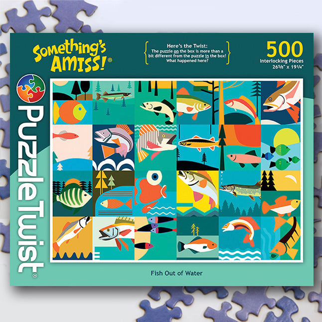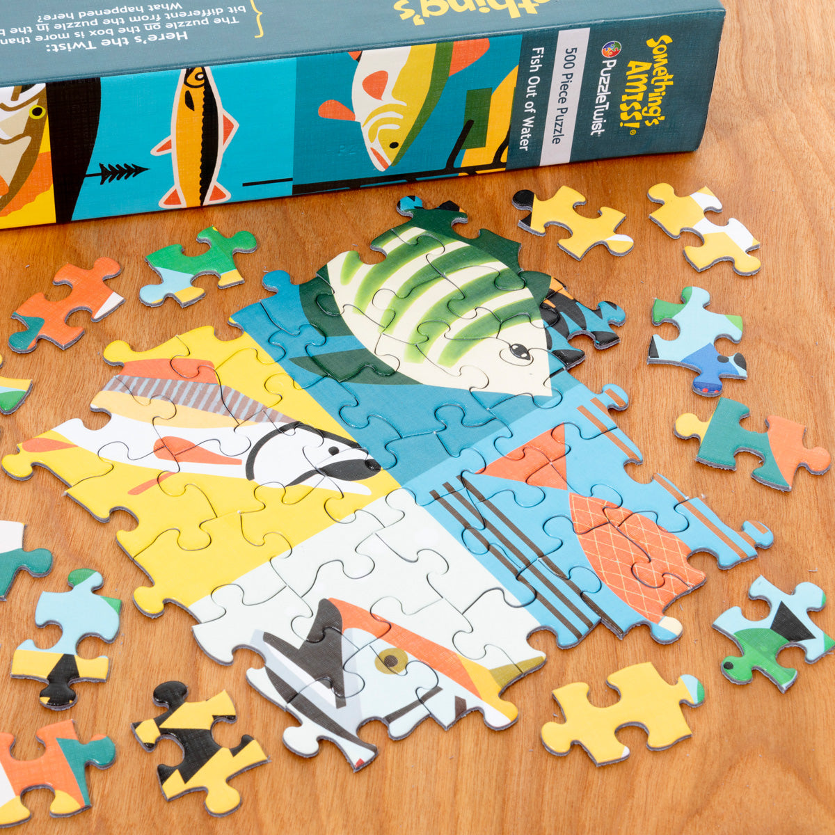 Minnesota native Sarah Browne is a photographer and mixed media artist known for her distinct illustration style. After traveling the world and spending over a decade in Los Angeles, she has now come back to her home state. Fish Out of Water presents a lively collection of her freshwater fish illustrations, ranging from the humble perch to the formidable musky. With some slippery twists, we hope you enjoy “catching” the final image. Happy puzzling!