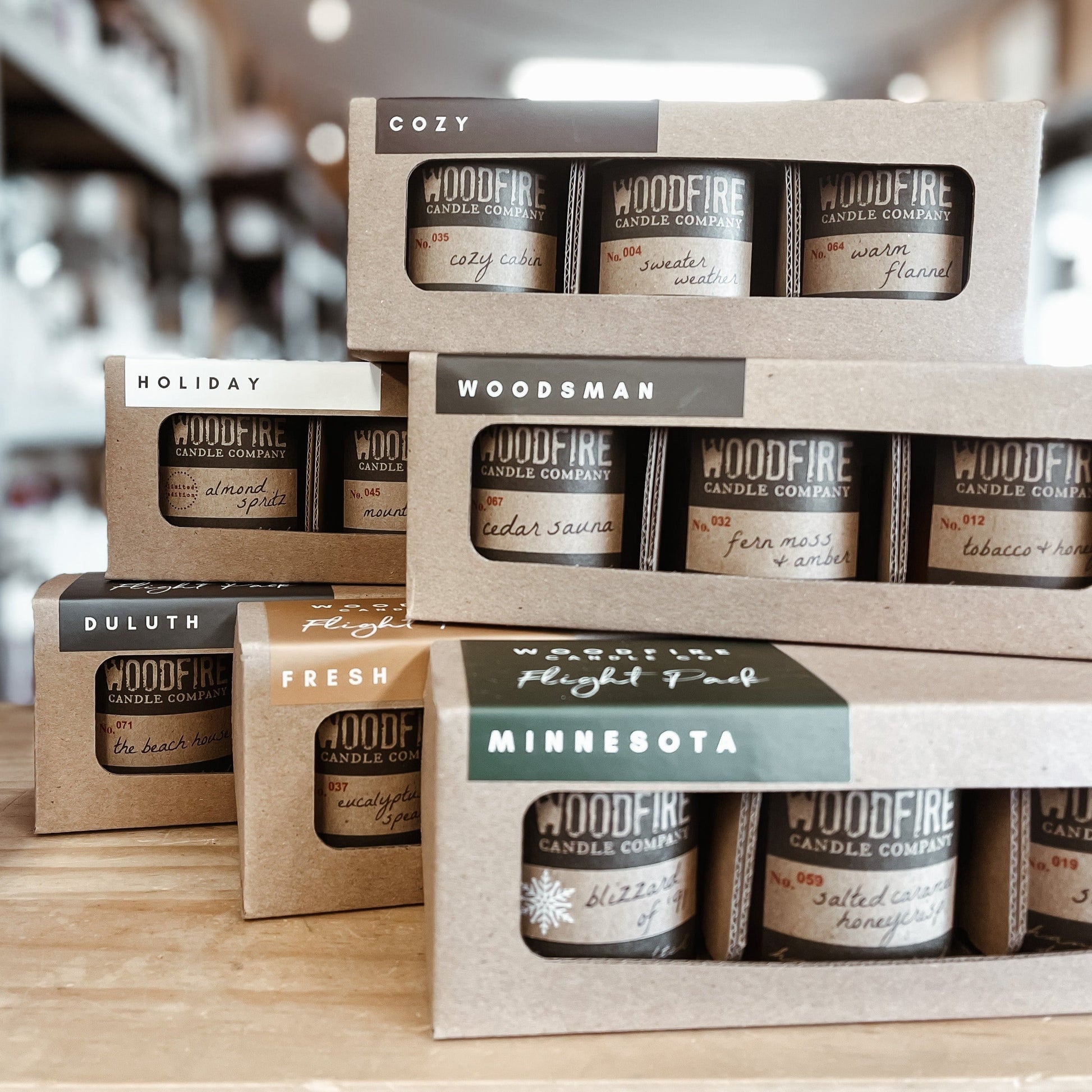 Each flight comes with 3 - 4oz amber mini jars in custom packaging, ready to gift whether you are gifting in person or mailing to your loved one. Each jar has our signature crackling wick and 100% soy just like you’re used to!