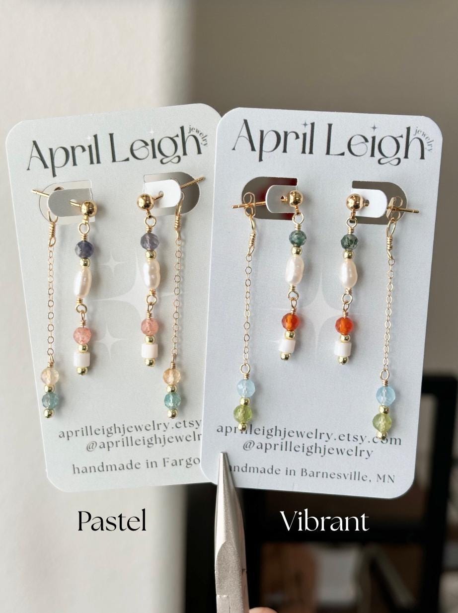 These elegant Gemma Earrings are handcrafted with bright gemstones that are paired with lustrous pearls that dangle delicately from both the front and backing. Available in hypoallergenic 14k gold fill or sterling silver, these earrings are ideal for sensitive ears. Perfect for adding a refined accent to any outfit, the Gemma Earrings offer a touch of sophistication and comfort for daily wear.