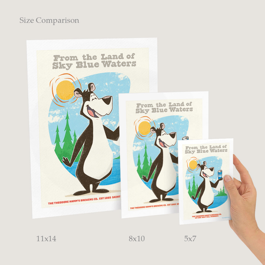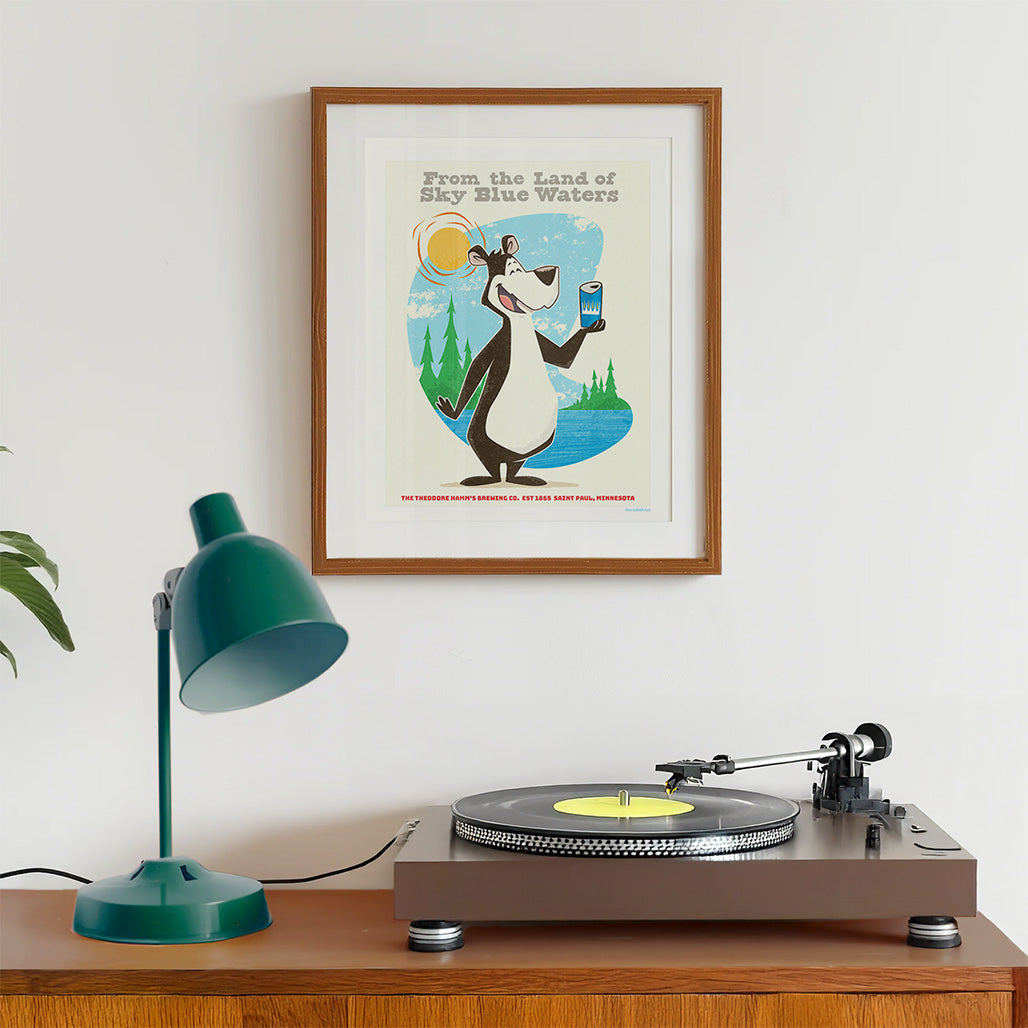 From the Land of Sky Blue Waters comes this vibrant, vintage-inspired art print featuring the beloved Hamm’s Bear. With bold colors and a modern twist on 1960s design, this piece brings a dose of nostalgia and charm to any space. Perfect for beer lovers, retro art fans, and anyone with a soft spot for Minnesota icons.