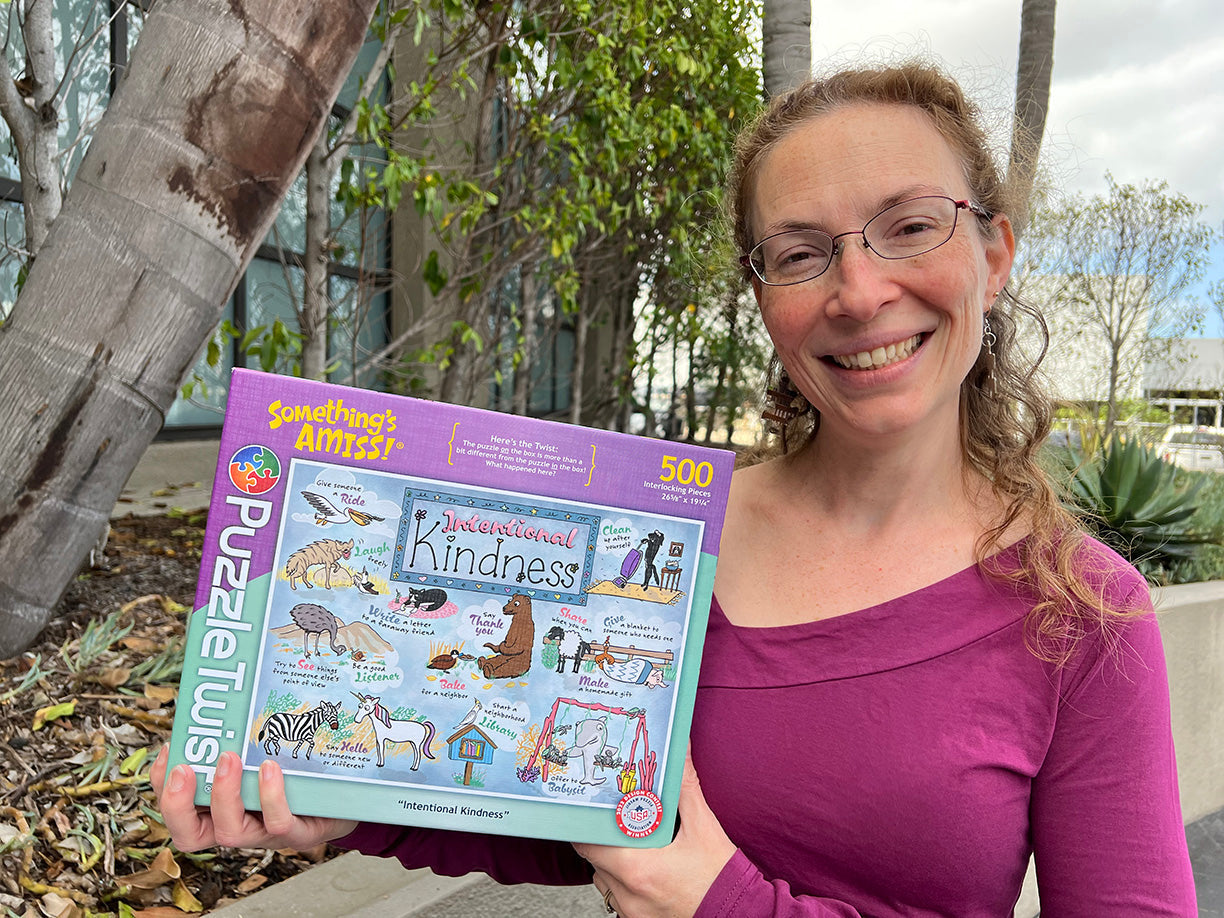 Robin Decaire is an illustrator, graphic designer, and avid jigsaw puzzler from Minnesota. Within the jigsaw puzzle community she is known for her speed puzzling (winning multiple competitions including the St. Paul Winter Carnival and the USA Nationals with her jigsaw puzzle teams). Robin created Intentional Kindness for a USA Jigsaw Puzzle Association design contest... and her design won! Intentional Kindness reminds us that helping one another is a fist bump for the soul.