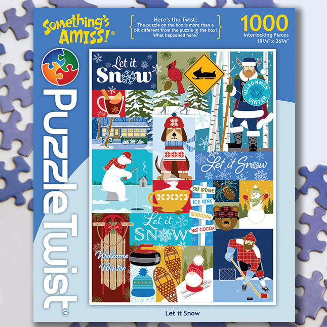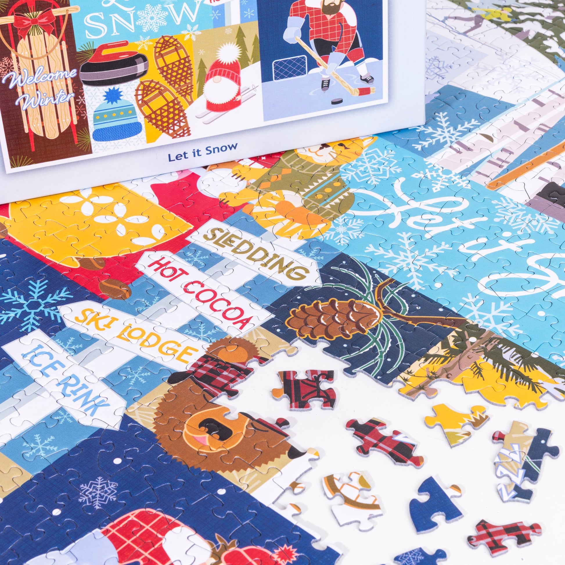 Minnesota artist Cindy Lindgren celebrates the magic of winter within this jigsaw puzzle, Let it Snow. Cindy encourages everyone to embrace the season—get out and ice skate, sled, ski, and attend winter festivals— just remember to bundle up with warm socks and mittens! From her home studio in the Twin Cities, Cindy creates illustrations for cards, art prints, textiles, and merchandise. With a few twists, Let it Snow is a jigsaw sure to heat you up.