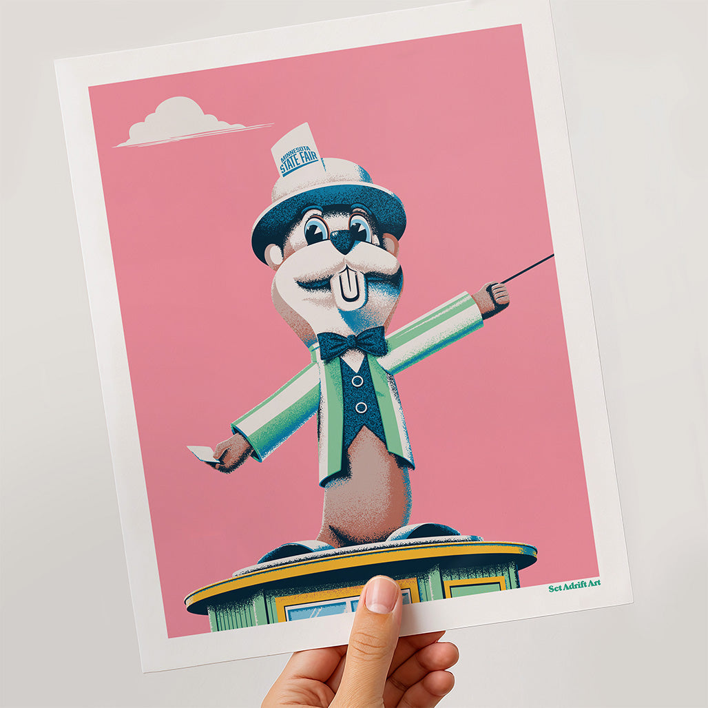 This playful, colorful art print brings Fairchild to life in vintage-inspired style—perfect for State Fair superfans, Minnesota natives, and anyone who looks forward to cheese curds and crop art each summer.