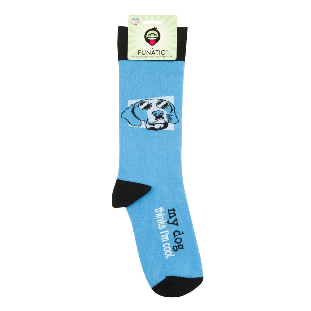These bright blue socks (with black toes, heels, and cuffs for contrast) feature a super chill pup rocking a pair of shades and the only validation you really need: “My Dog Thinks I’m Cool.” And honestly? That’s more important than whatever Steve from accounting thinks.
