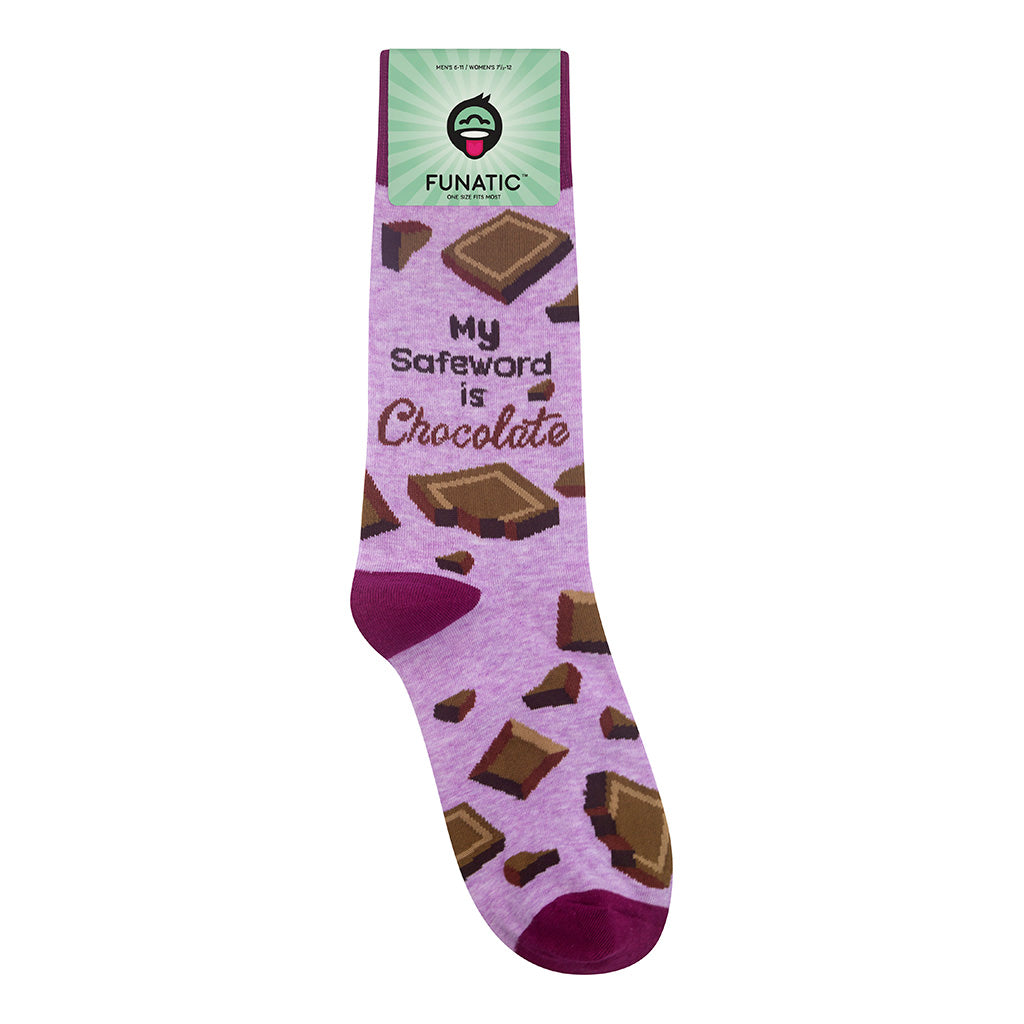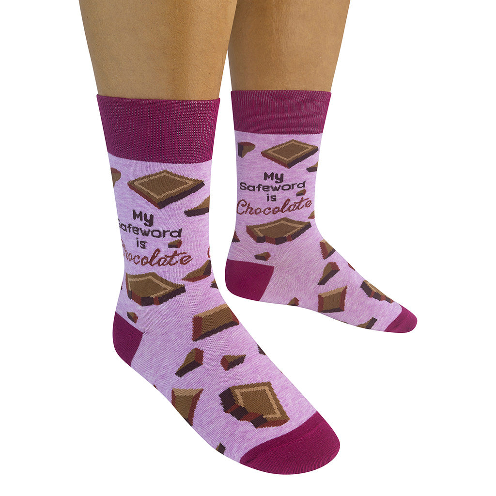 Indulge your sweet tooth with our "My Safeword Is Chocolate" funny socks!