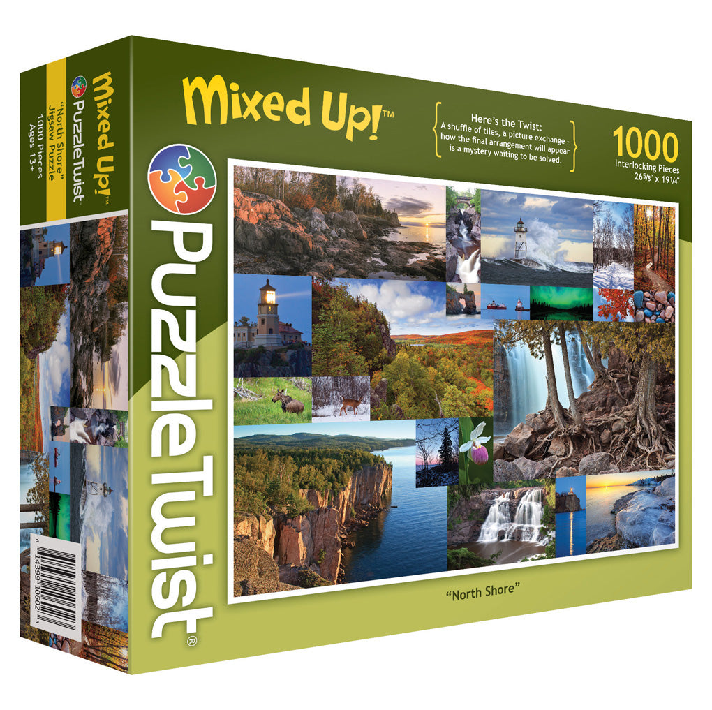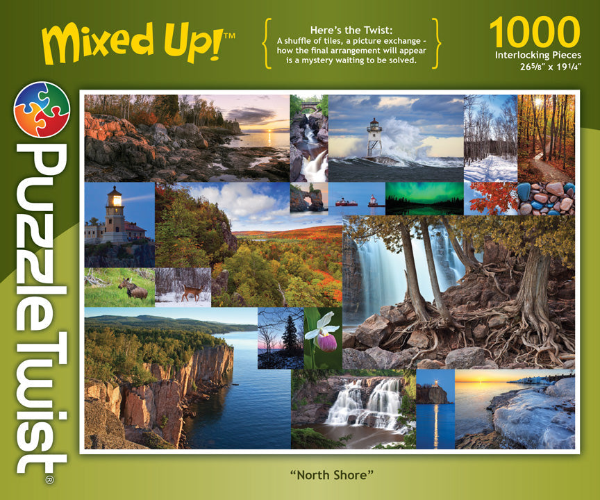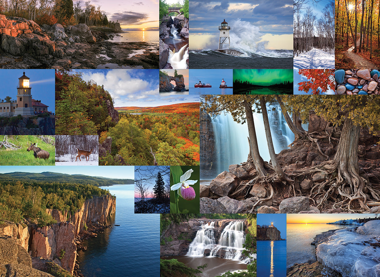 If you've ever visited Minnesota's North Shore, you'll be drawn to the scenic nature of the areas lakes and woods depicted in this stunning photography. Whether a majestic lighthouse, breathtaking sunset or splendid color transformation of leaves in the fall, you'll be transfixed by this puzzle with a twist.