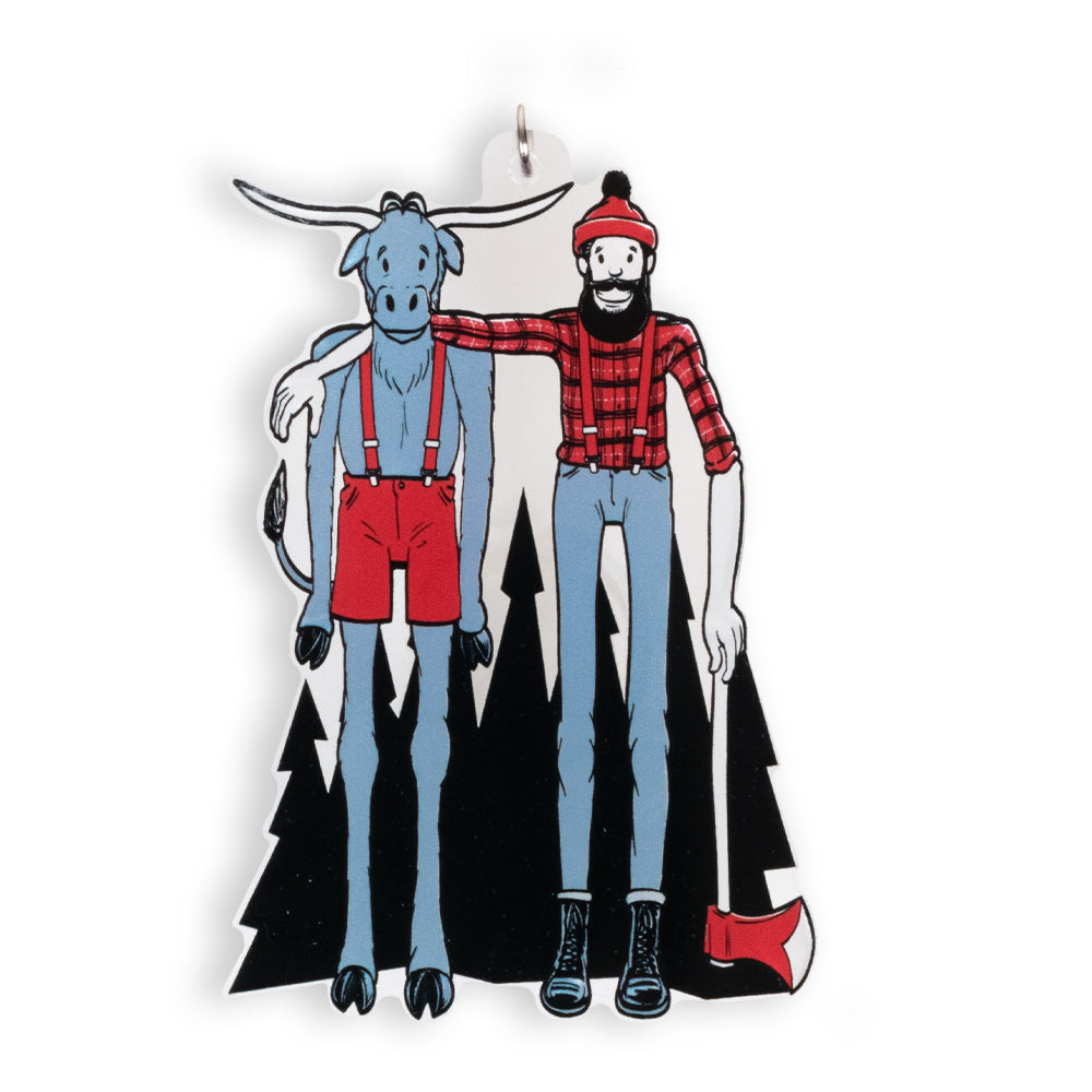 Paul Bunyan and Babe the Blue Ox look good on t-shirts, mugs and stickers. So it just stands to reason that they would look great on an ornament, and they do.