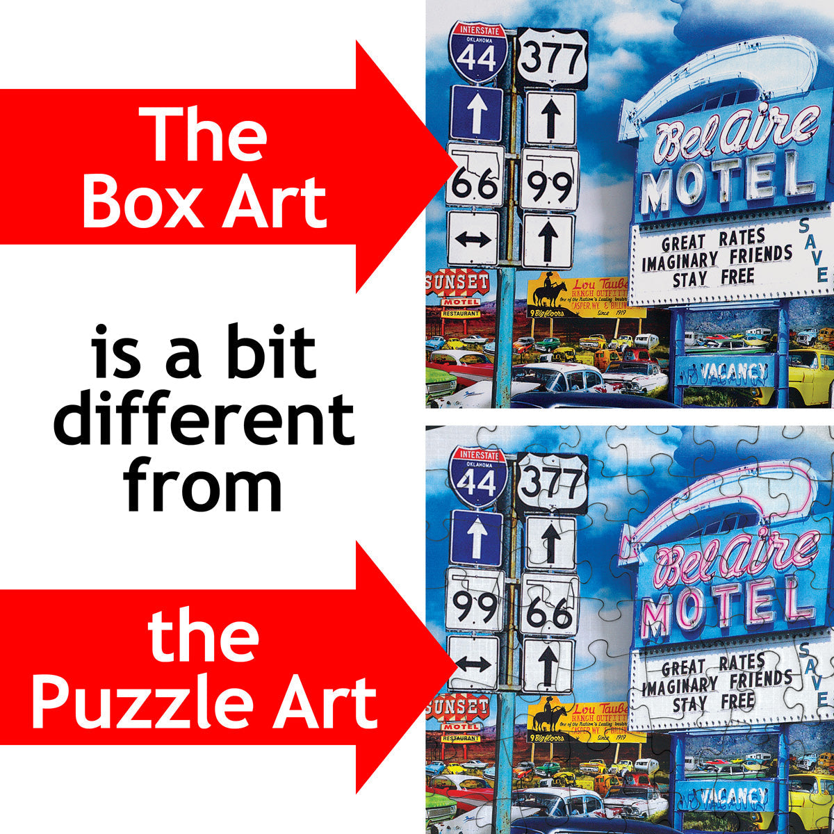 Route 66 was well-known as the Main Street of America, and this nostalgic gaze into the past will have classic car enthusiasts flashing a warm-hearted smile. You are transported to a time where traveling meant striking out to see what you could see. For those with a keen eye, the variety of changes to this jigsaw are sure to heighten the wistfulness of bygone days.