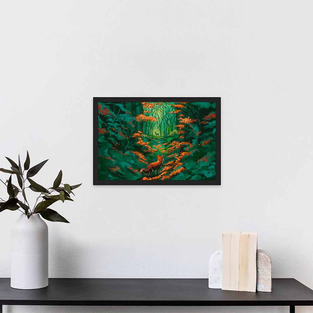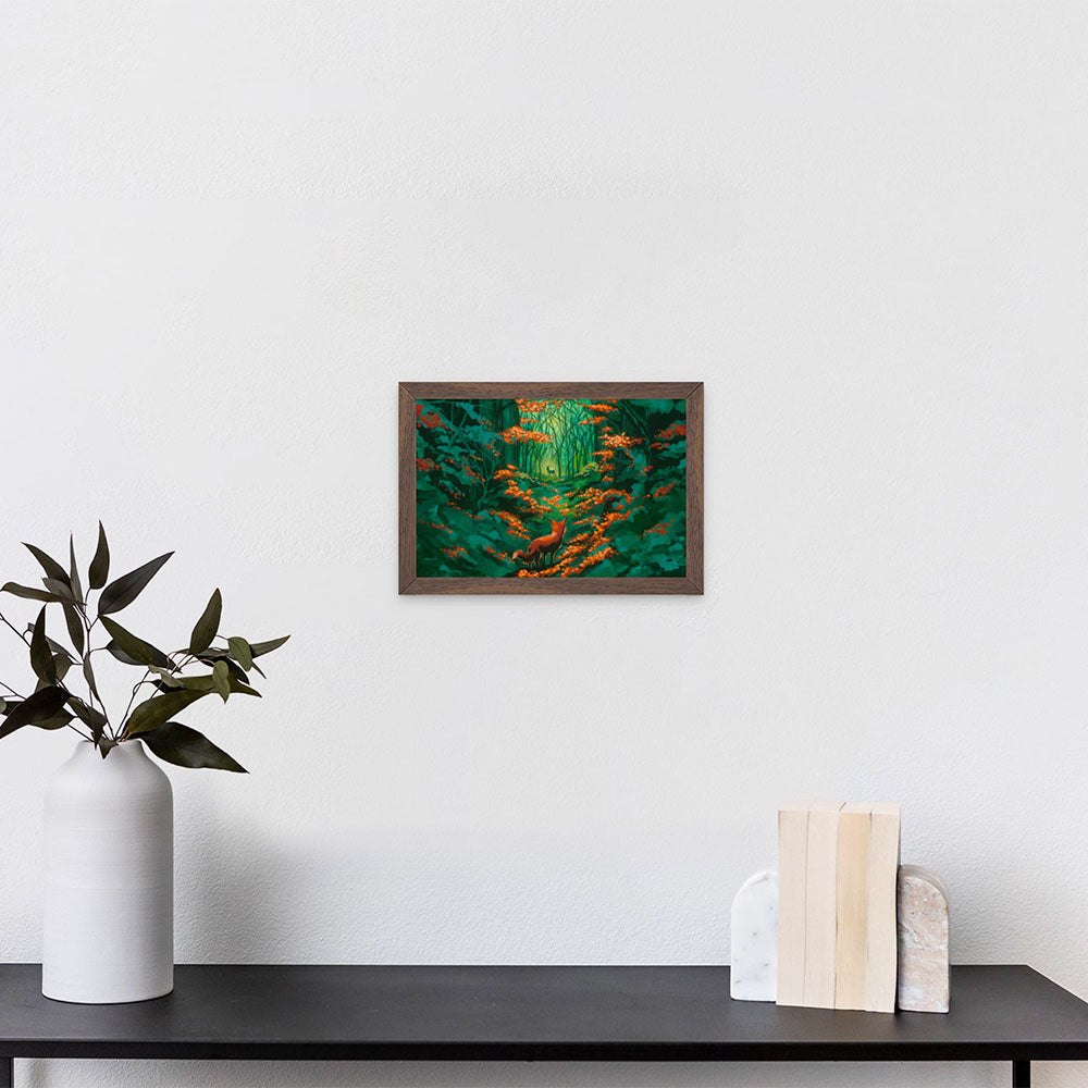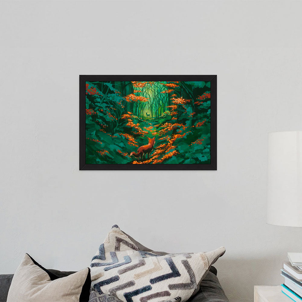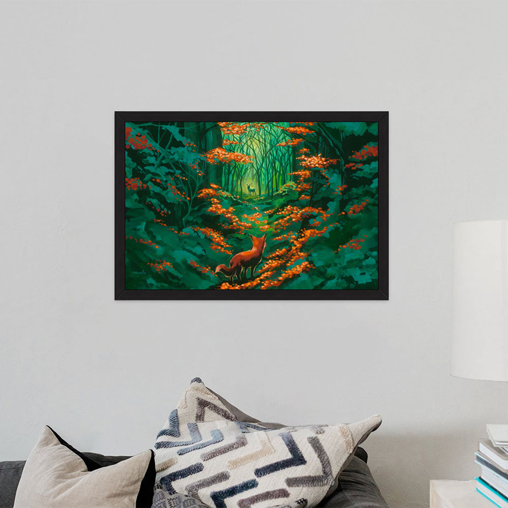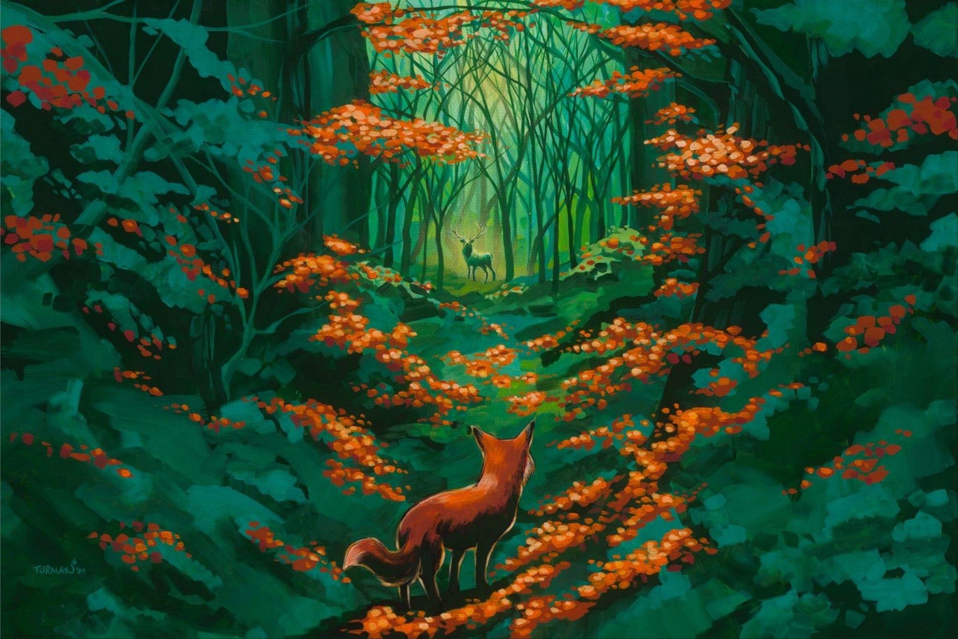 The stag standing so regal in the clearing is a nod to Harry Potter’s patronus in the Prisoner of Azkaban. But, if you don’t know the reference, no worries! The imagery in this piece came together to draw you in, and you can make up your own stories as to why the fox has wandered off the path and who is sight-seeing who? It has become one of my favorite paintings.