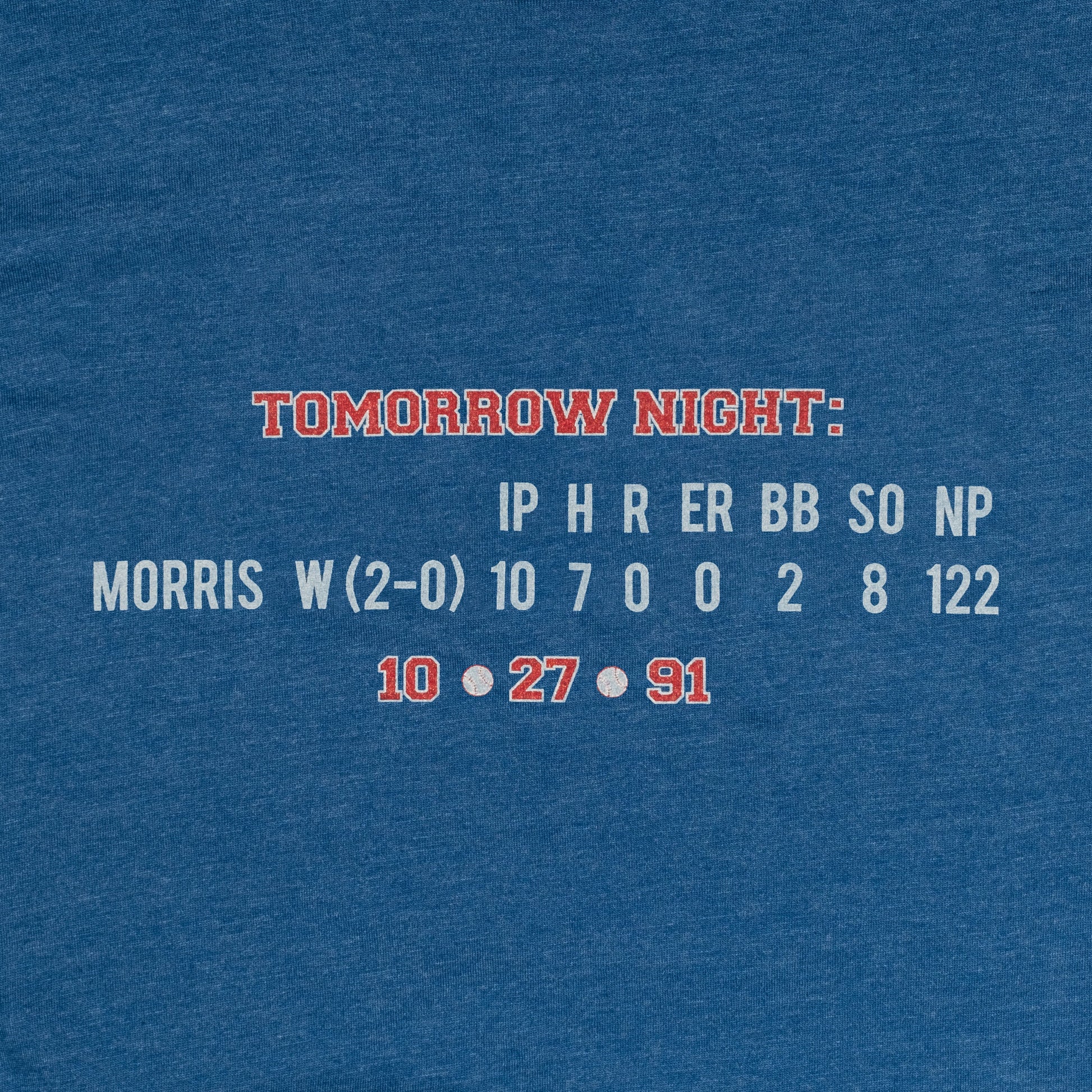 On October 27, 1991, Jack Morris turned in one of the greatest (and most underrated?) performances in baseball history. 10 shutout innings under the most intense pressure imaginable- the stat line in the box score doesn't come close to doing it justice. It remains one of the all-time great examples of "Hometown Boy Makes Good". And it's about time someone celebrated this amazing feat with a t-shirt!